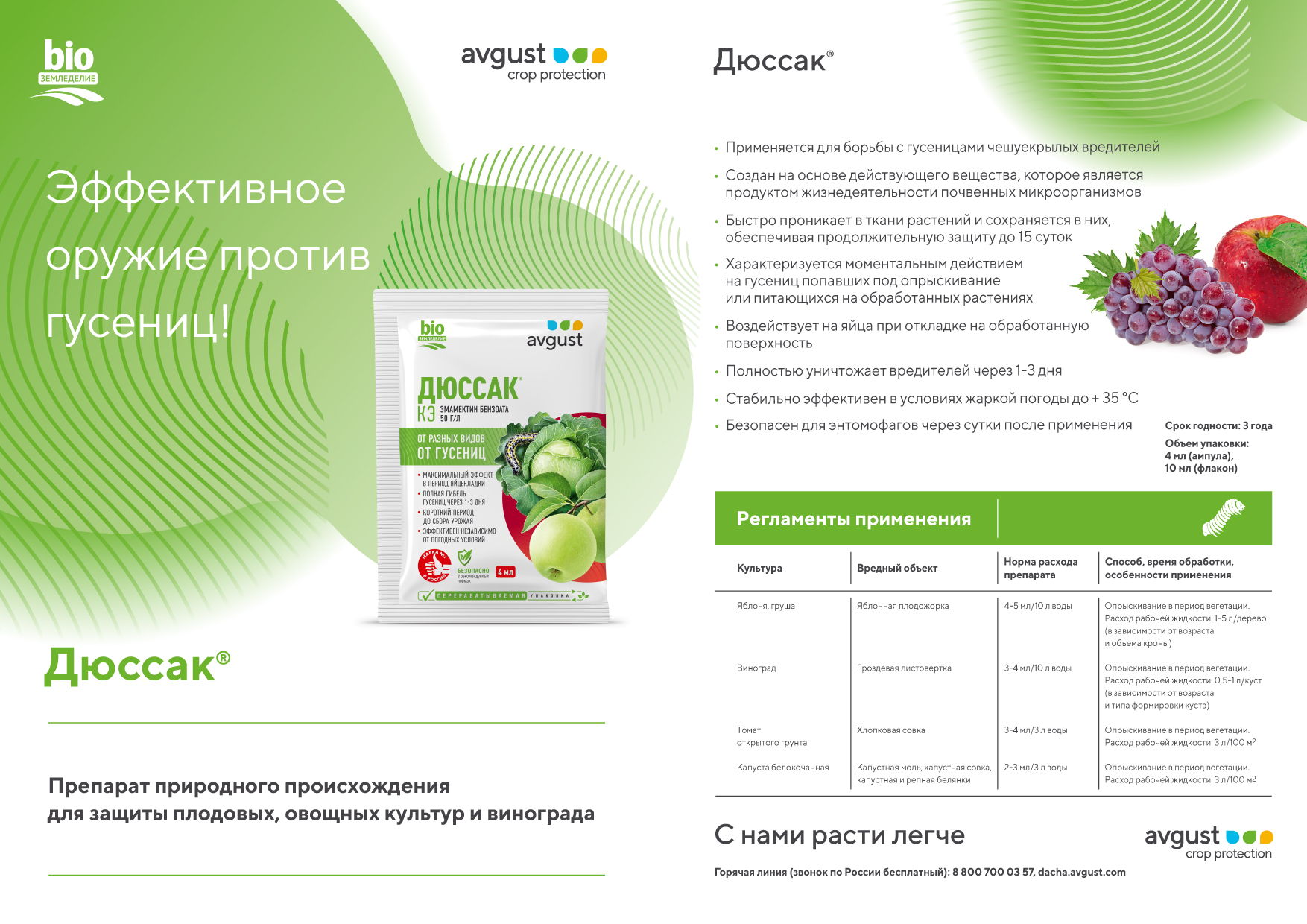 - Безопасен для энтомофагов через сутки после применения.