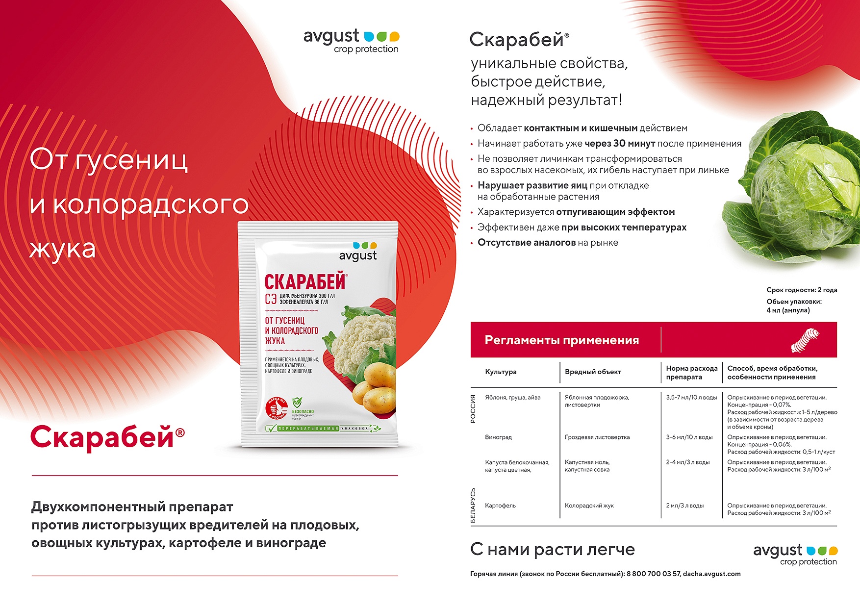 Двухкомпонентный препарат против листогрызущих вредителей на плодовых, овощных культурах, картофеле и винограде.